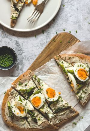 Springtime Flatbread with Ricotta Asparagus and Eggs